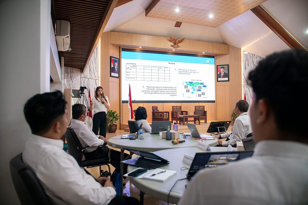 The second day began with a session led by Veerle from Blue Deal Indonesia, who reintroduced the three-layer Water Governance framework consisting of the knowledge, institutional, and relational layers. Drawing on examples from the Netherlands, she illustrated how integration among these layers supports effective water governance and how similar approaches could inspire Indonesian contexts. Participants revisited lessons from the Water Governance Webinar held on 30 September 2025, linking conceptual insights with practical realities.